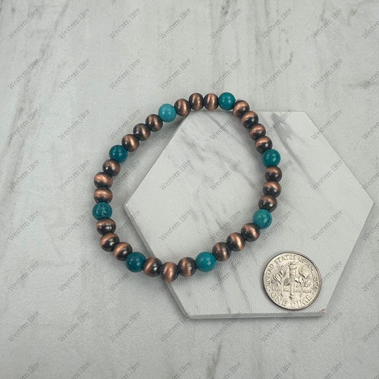 6 mm copper Navajo pearl with dark blue turquoise stone beads stretch Bracelet