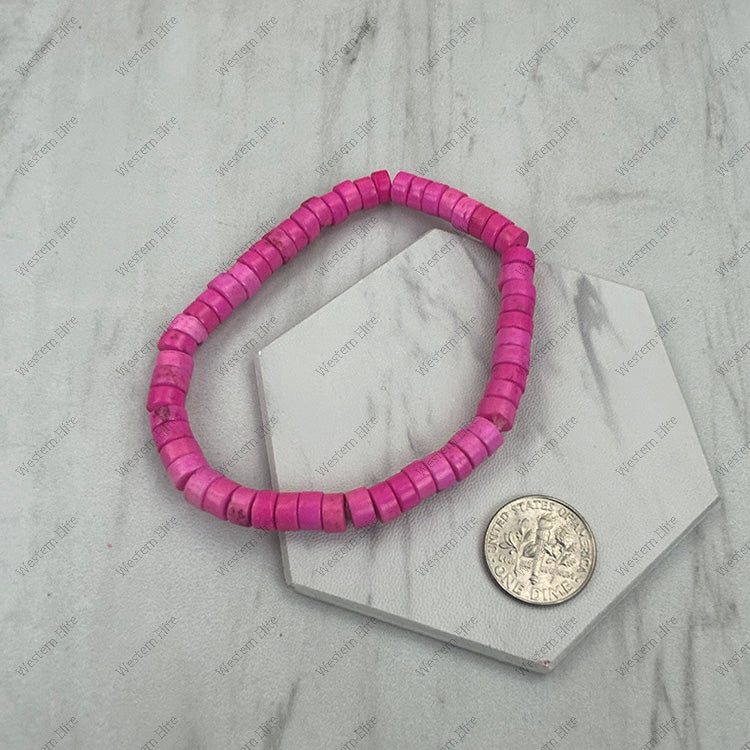 6 mm hot pink roundel turquoise stone beads stretch Bracelet