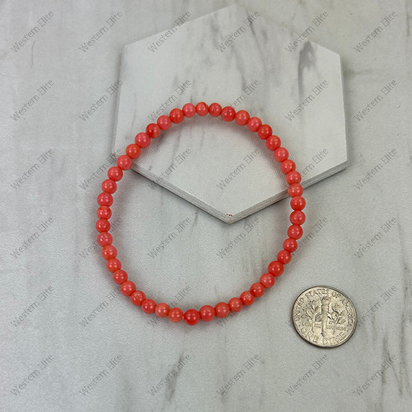 BR251230-49 4mm hot pink coral beads stretch Bracelet