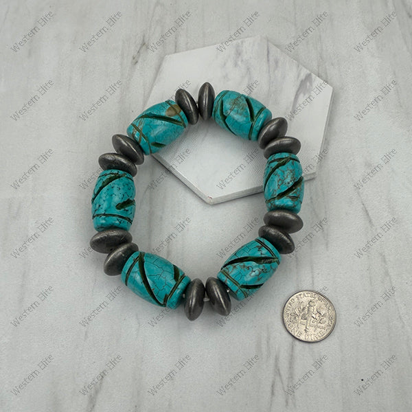 BR251230-75 Silver Navajo pearl with green turquoise stone stretch Bracelet
