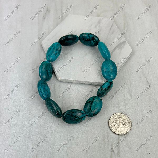 Dark blue oval turquoise stone stretch Bracelet
