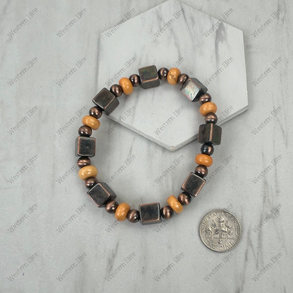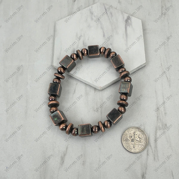 Copper Navajo pearl with blue roundel turquoise stone beads stretch Bracelet