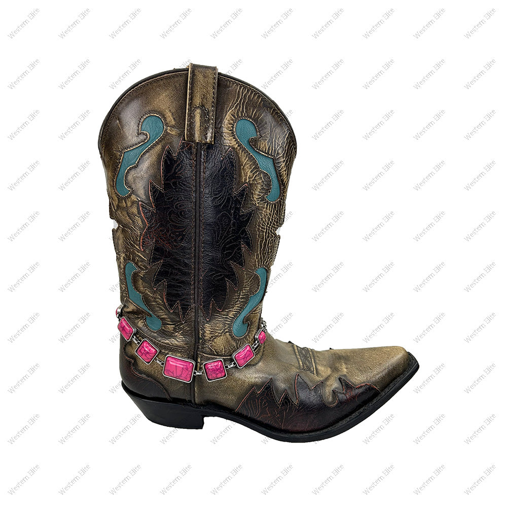 19'' Silver metal  with blue rectangle turquoise stone Boot chain