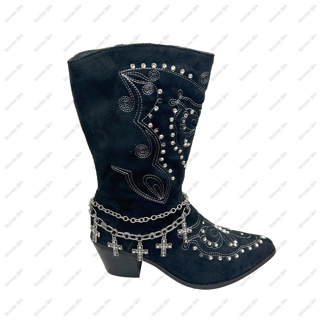 BOT130101-65 15 Inches long silver metal chain with cross boot chain