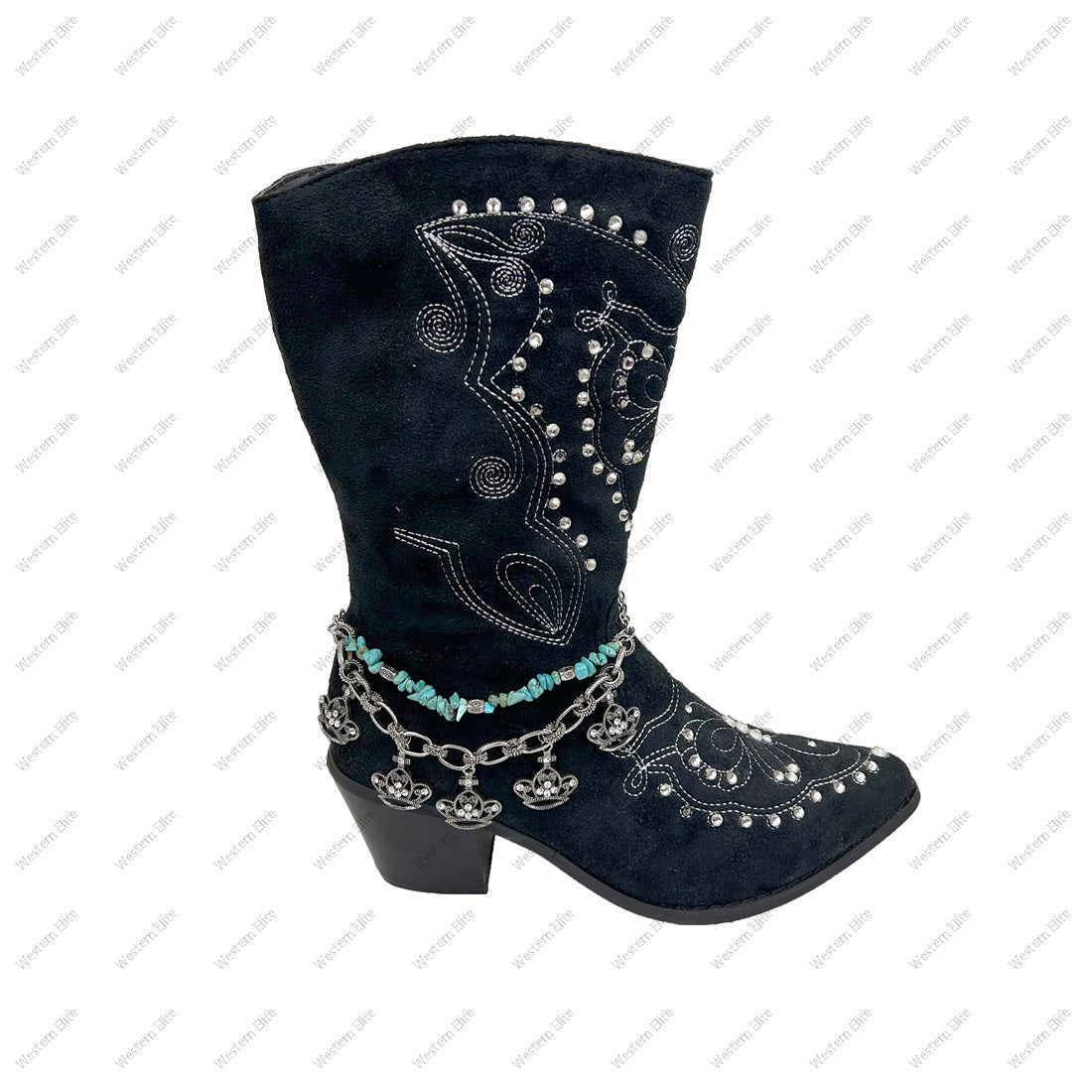 15 Inches long silver metal chain and blue turquoise stone with metal crown boot chain