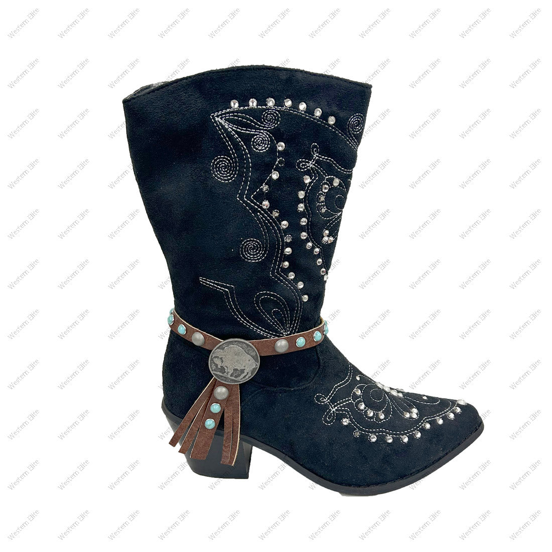 BOT191017-02 13 Inches brown leather with blue turquoise stone and silver buffalo boot chain