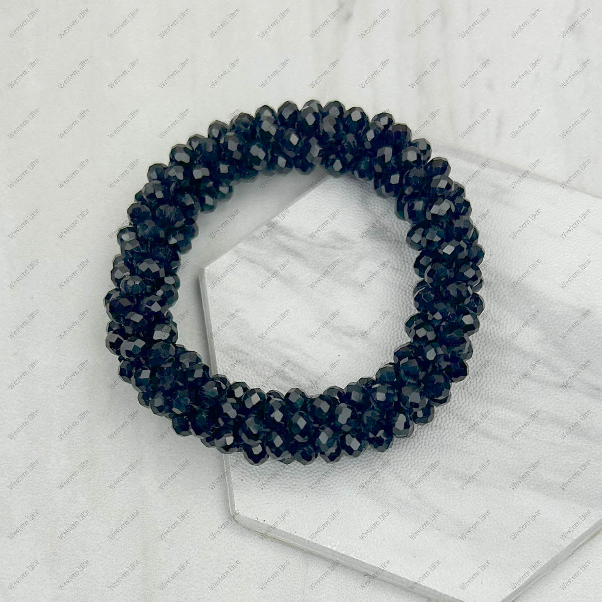 Blue crystal beads stretch bracelet.