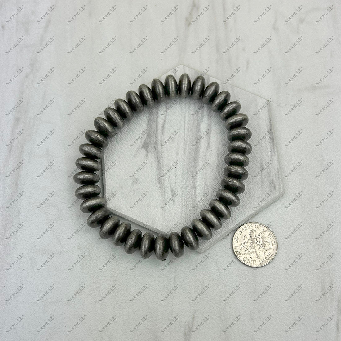 BR250120-18 10 mm stretch silver Navajo pearl beads Bracelet