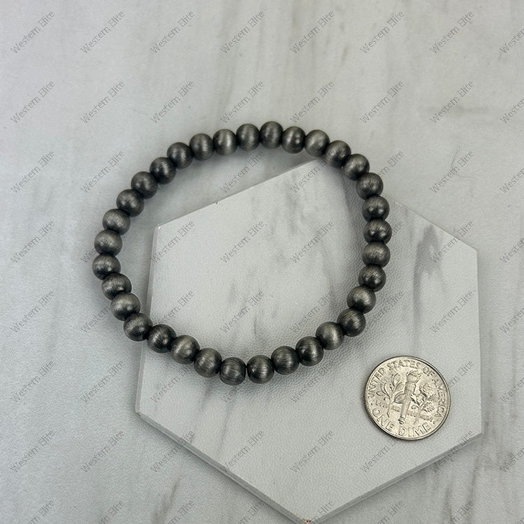 BR250120-43-SILVER 8 mm silver Navajo pearl beads Bracelet