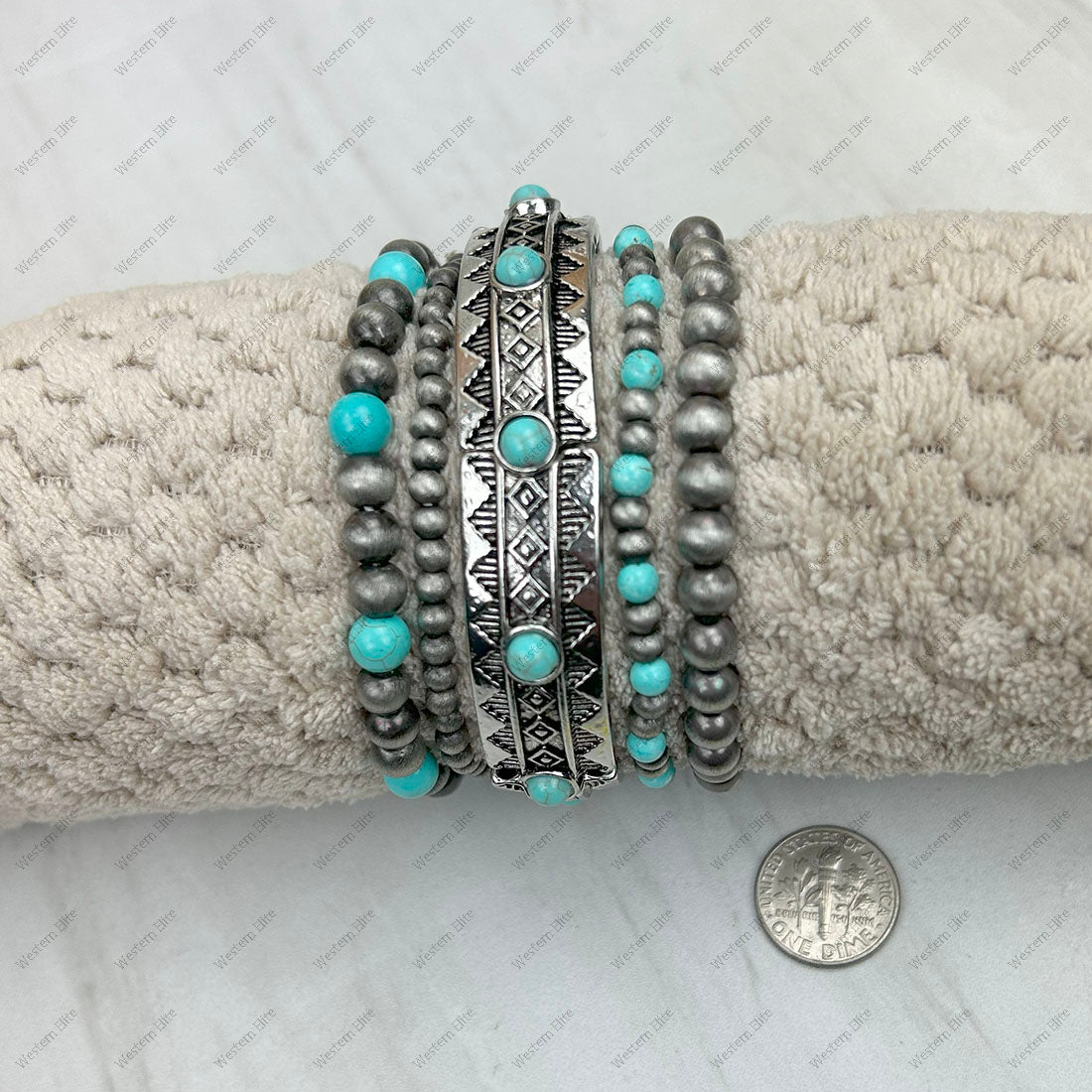 BR250308-17 Silver Navajo pearl beads and blue turquoise stone beads strength Bracelet sets