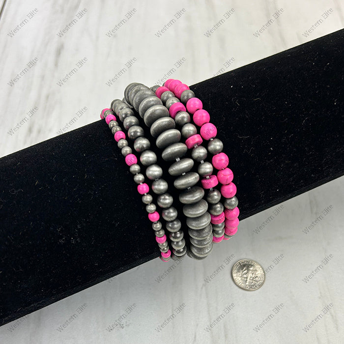 Silver Navajo pearl with hot pink stone beads Bracelet sets