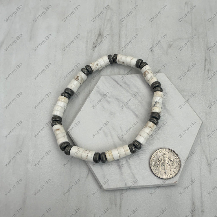 6 mm Silver Navajo pearl with white roundel turquoise stone beads stretch Bracelet