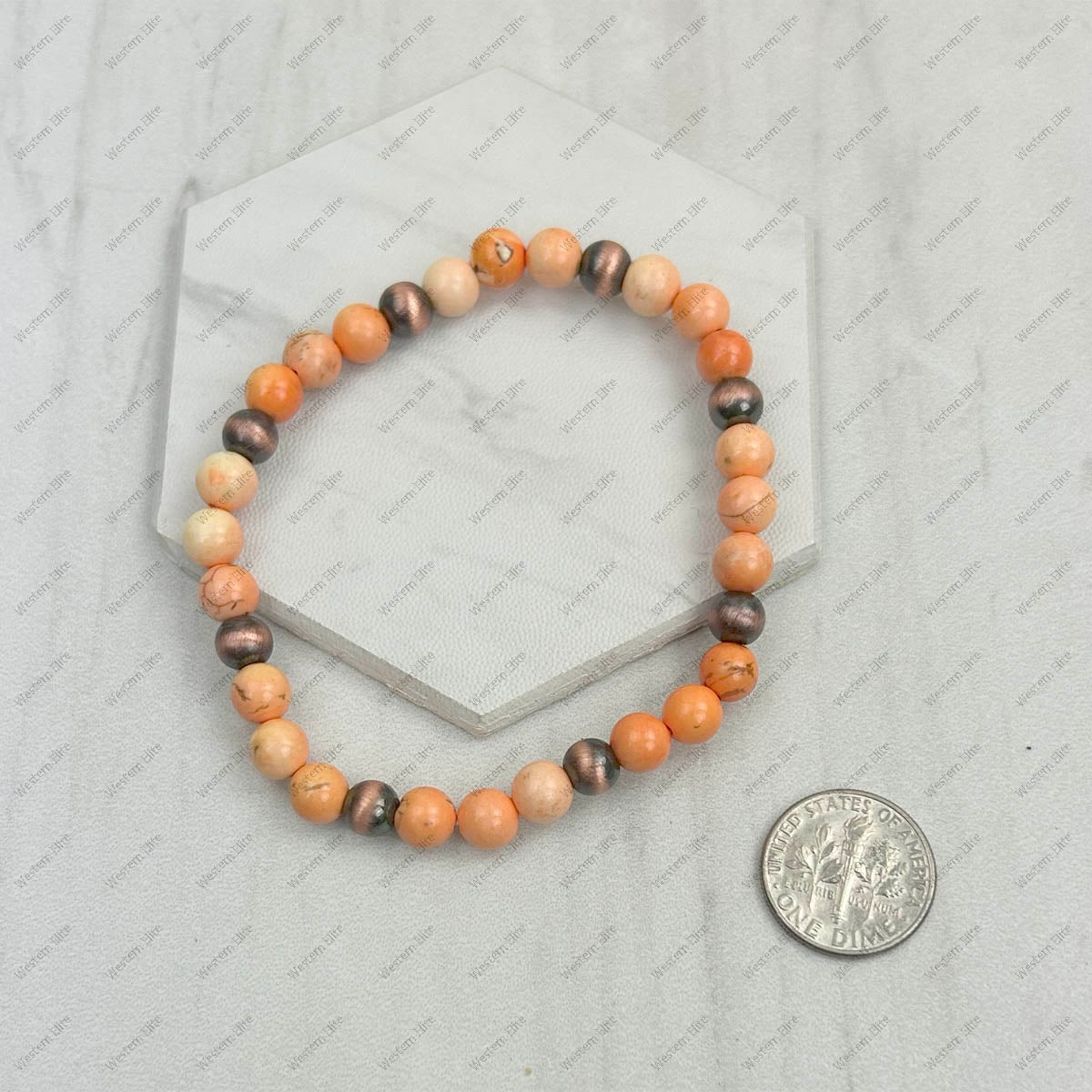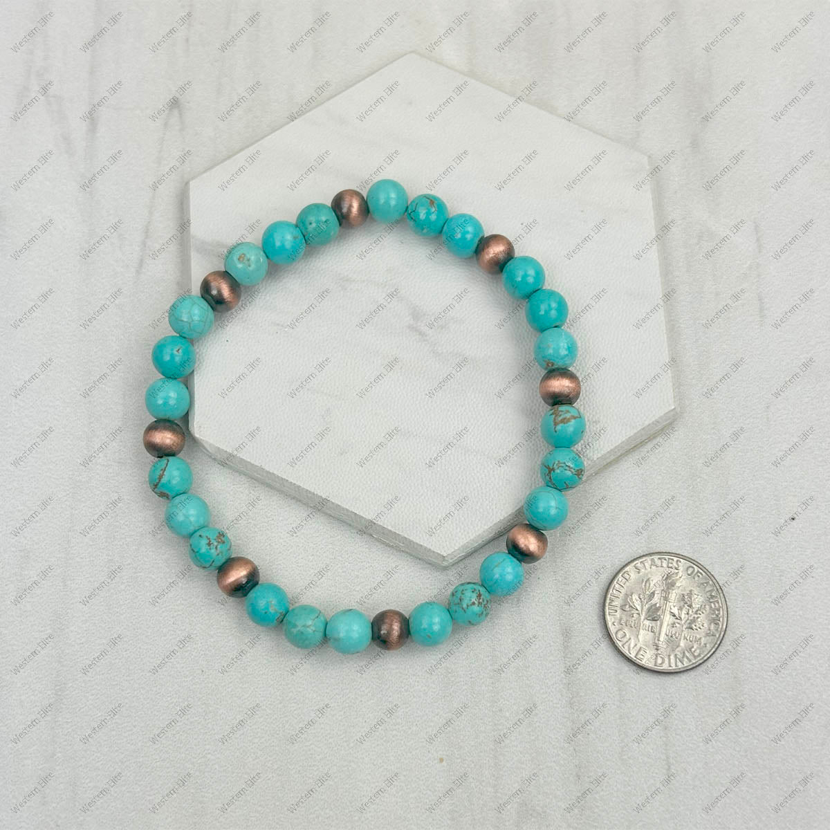 BRZ240708-20 Blue turquoise stone and copper Navajo pearl beads bracelet