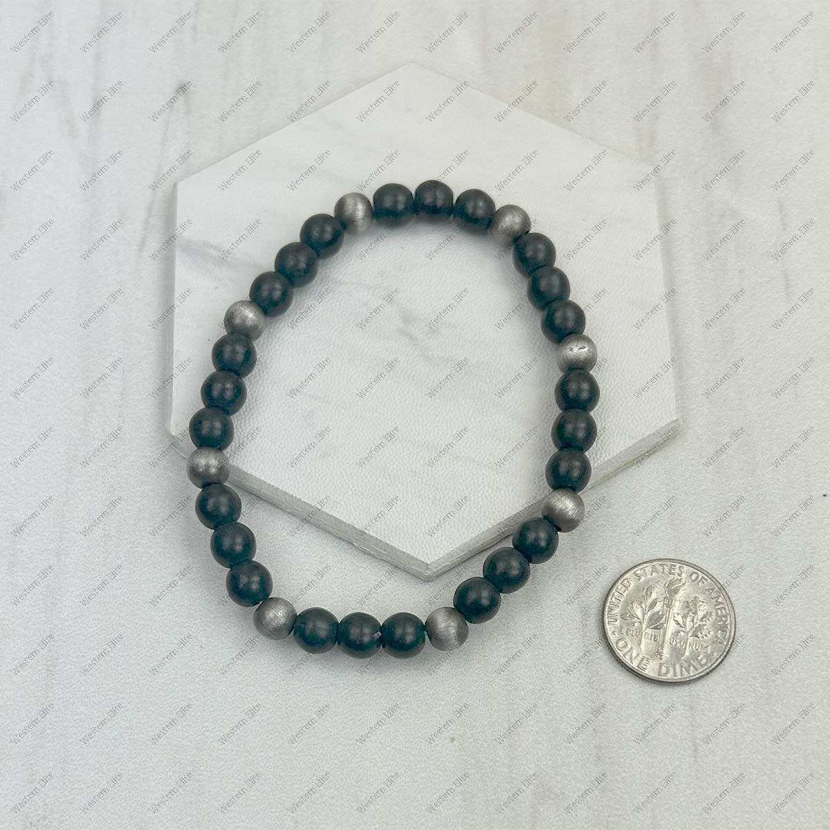 Black stone and Silver Navajo pearl beads bracelet