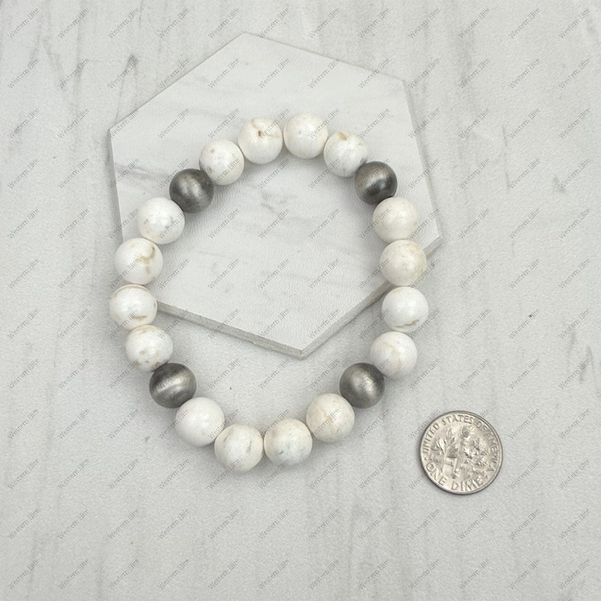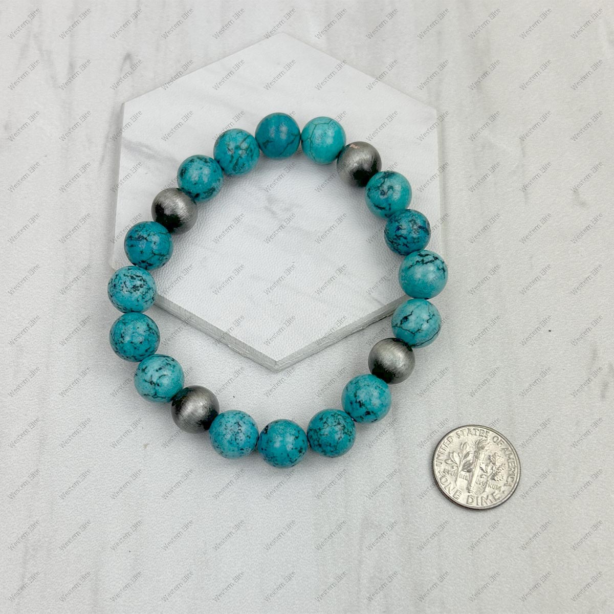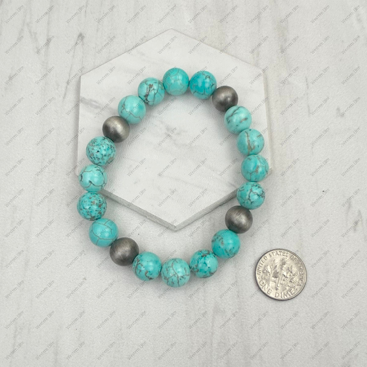 BRZ240708-46 Blue turquoise stone and Silver Navajo pearl beads bracelet