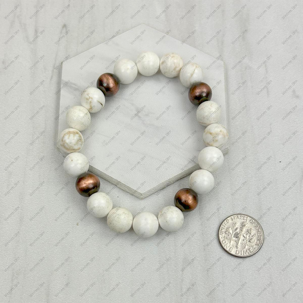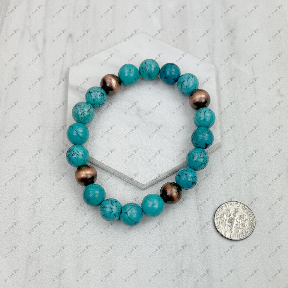 BRZ240708-50 Blue turquoise stone and copper Navajo pearl beads bracelet