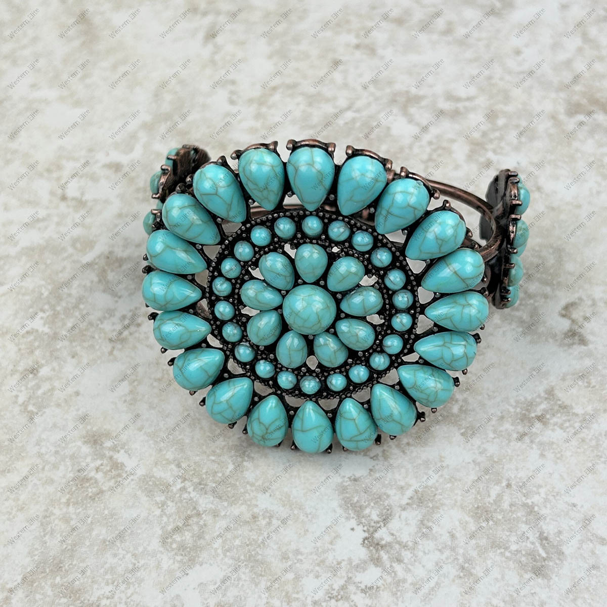 | Cooper with Blue turquoise stone Concho Cuff Bracelet |