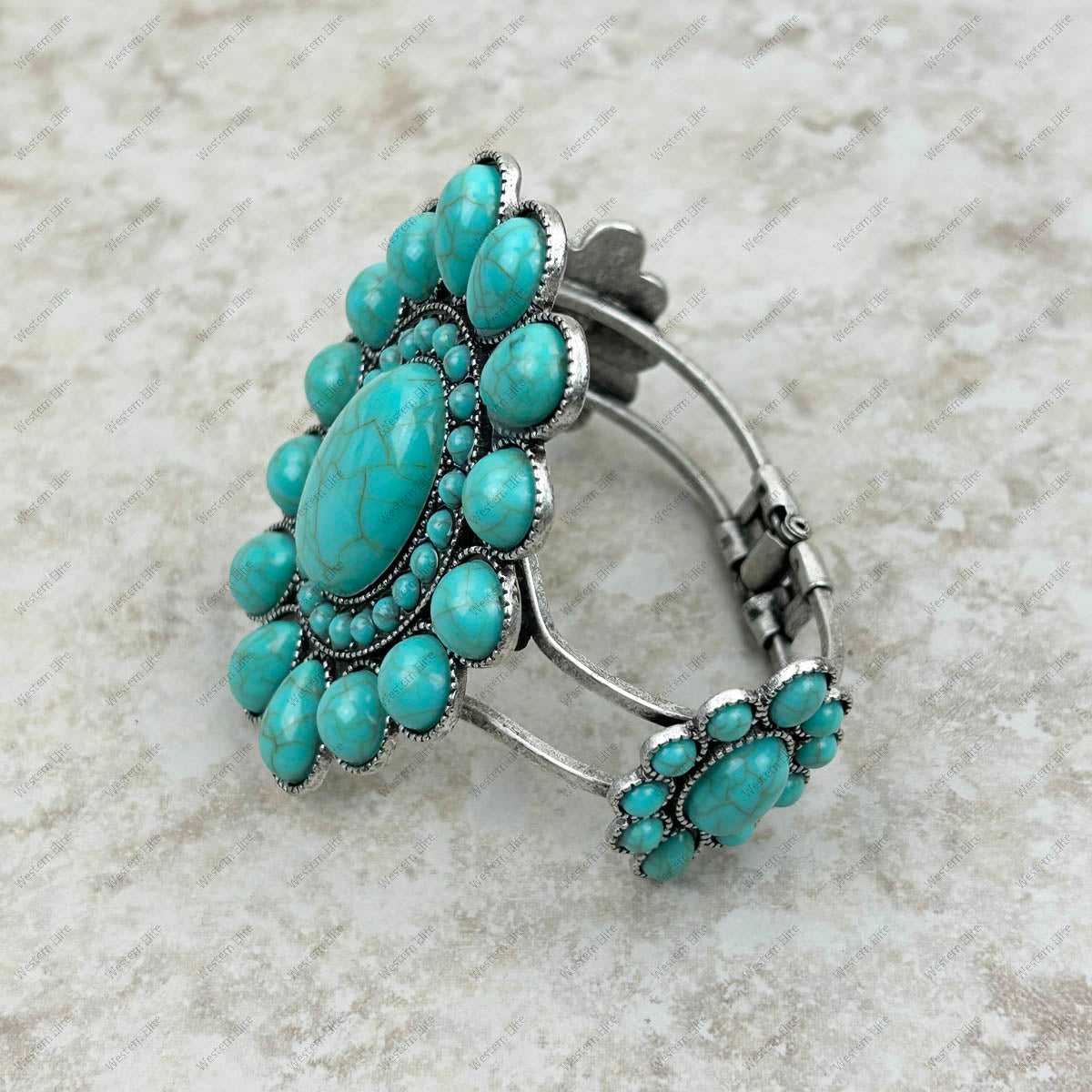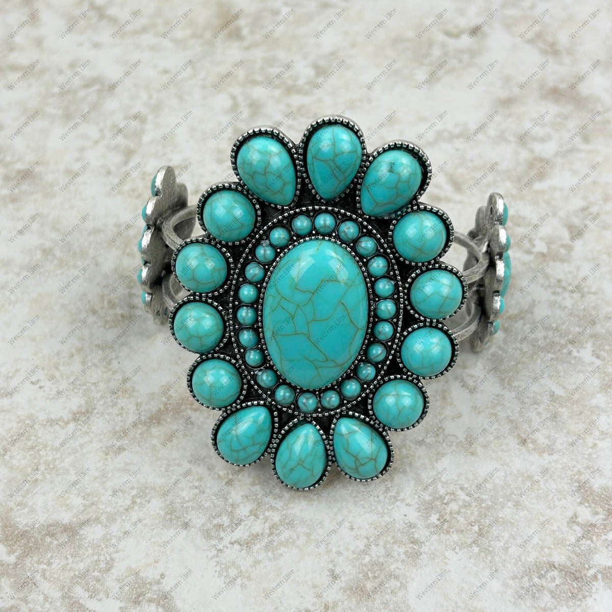 | Silver with Blue Turquoise stone Concho Cuff Bracelet |
