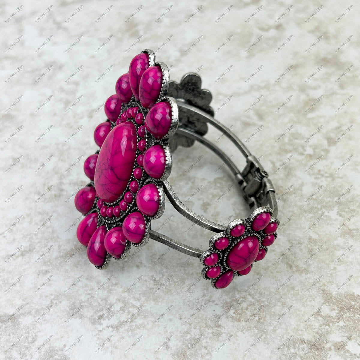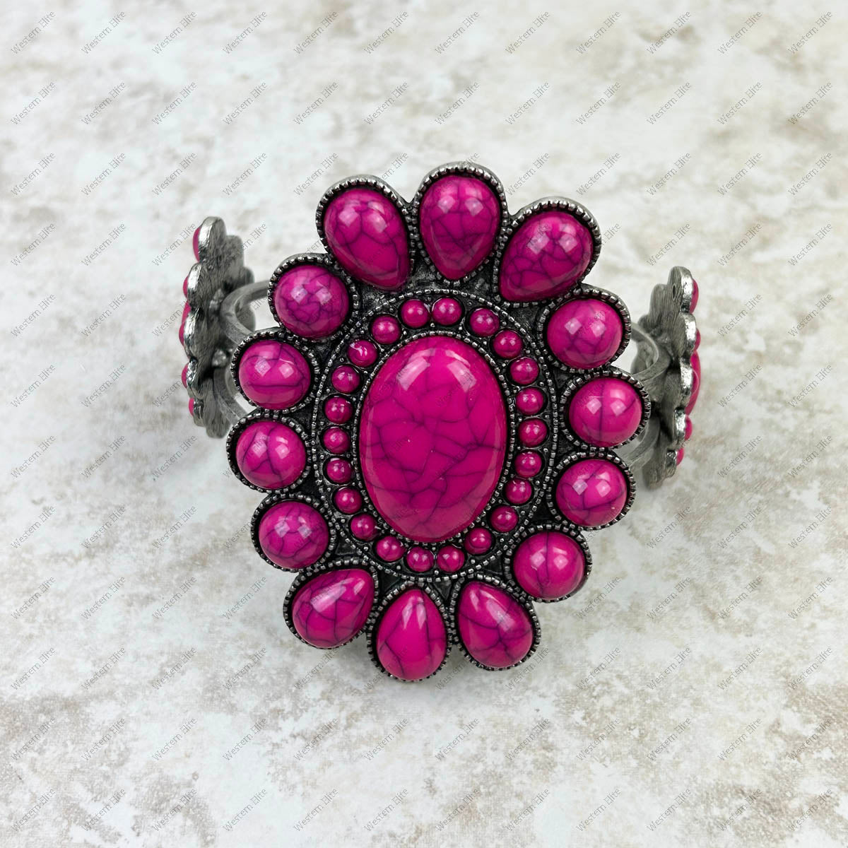 BR211230-02-PINK Silver with Hot pink stone Concho Cuff Bracelet