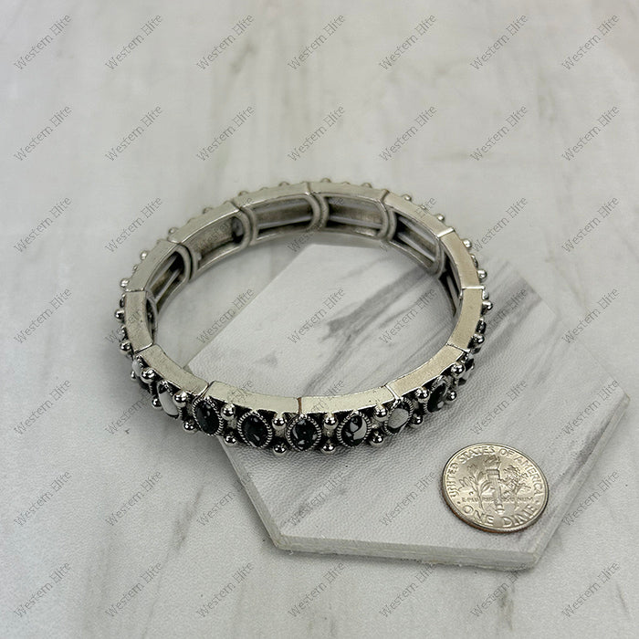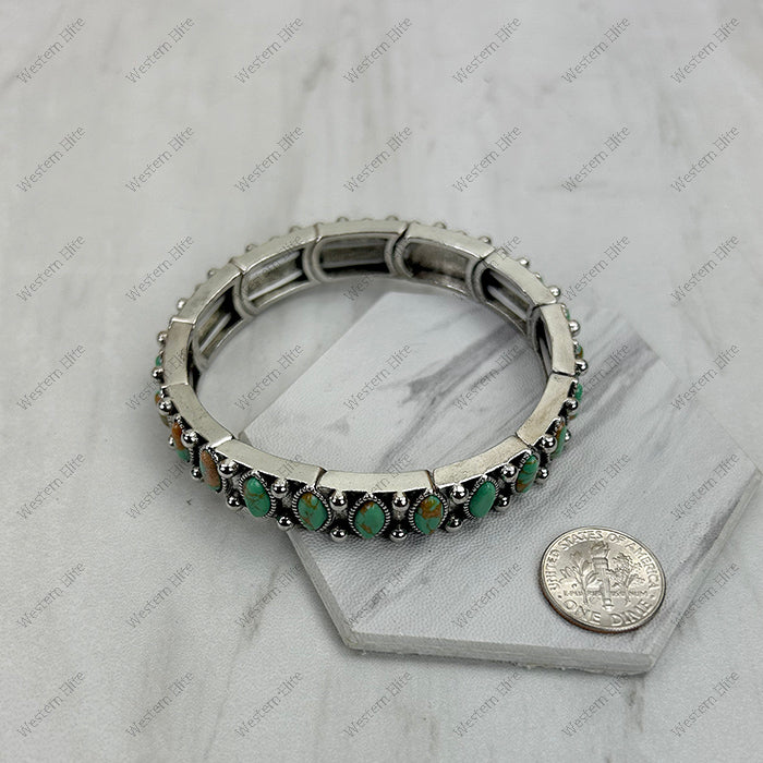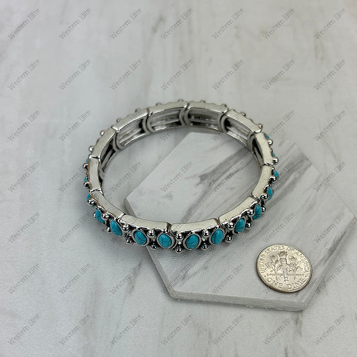 BR251010-01-BLUE Silver metal with blue oval stone stretchy Bracelet