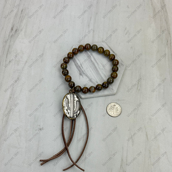 | Brown jasper Bracelet with tassel and metal Cactus pendent |