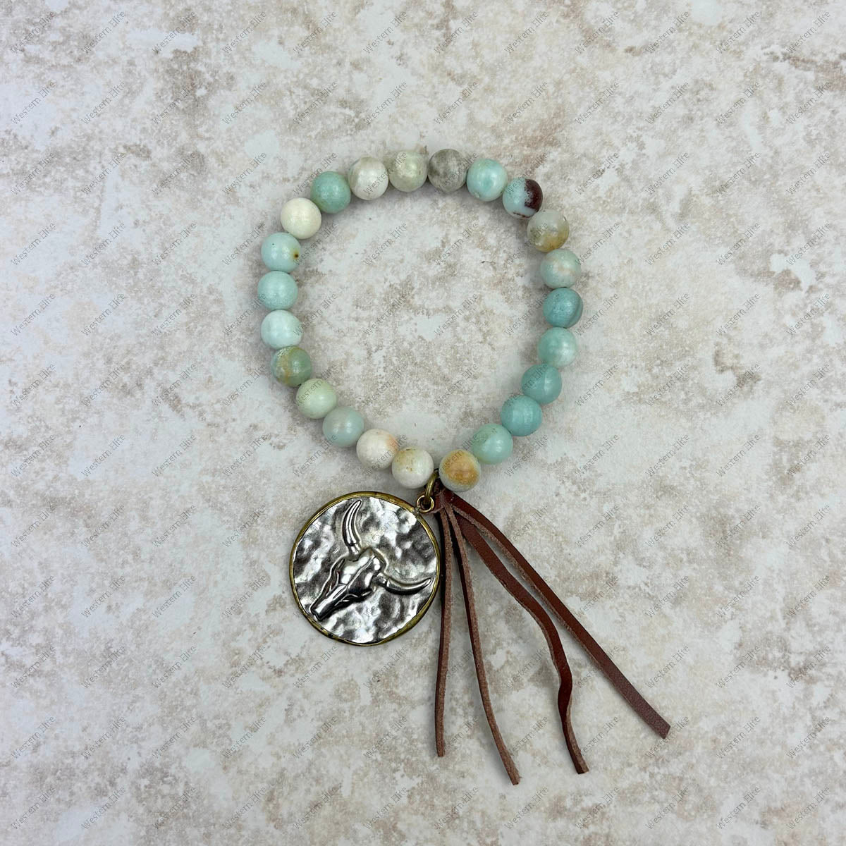 | Muti color jasper Bracelet with tassel and metal long horn pendent |