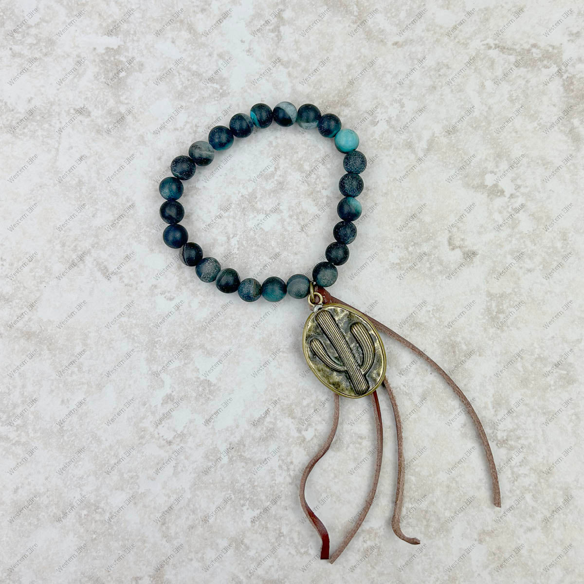 | Dark blue jasper Bracelet with tassel and metal cactus pendent |