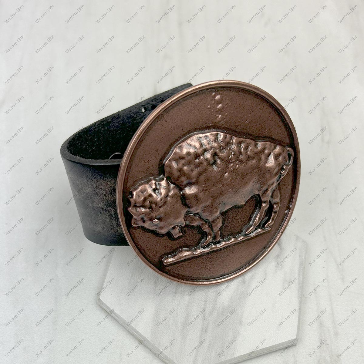 NKZ231226-03 Black leather with silver metal buffalo bracelet