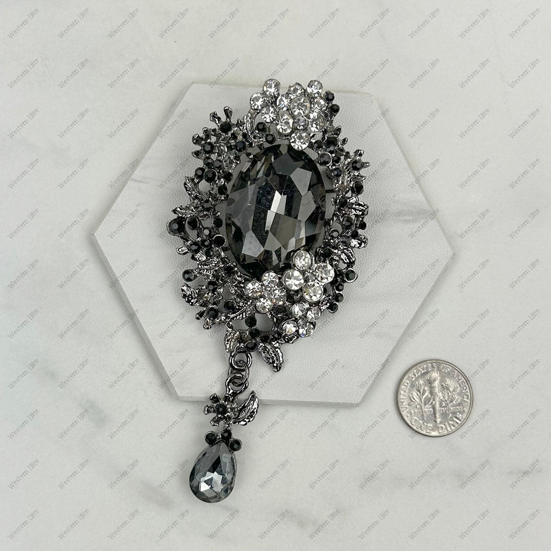 Silver with black and clear crystal brooch
