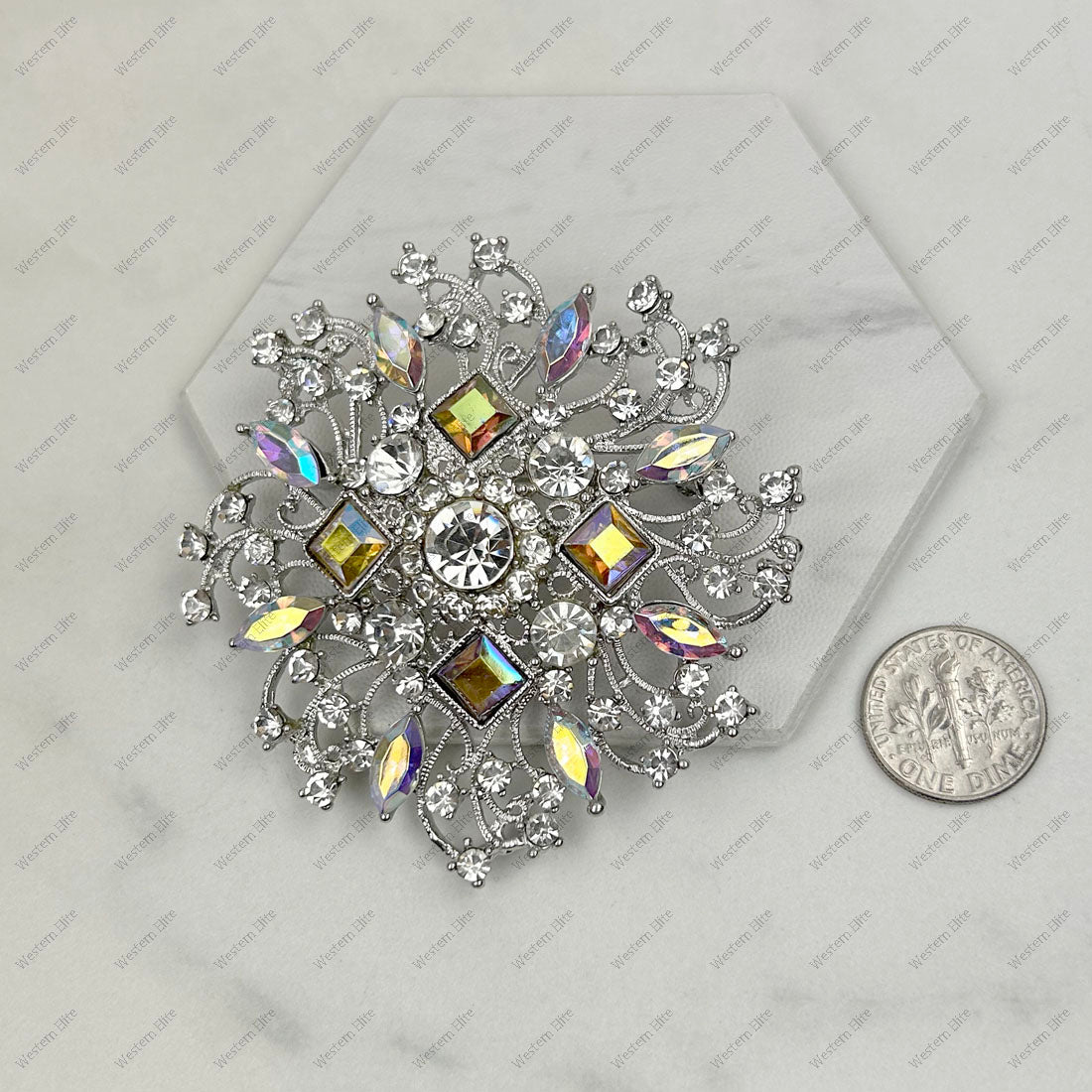 Silver with clear and clear AB crystal brooch