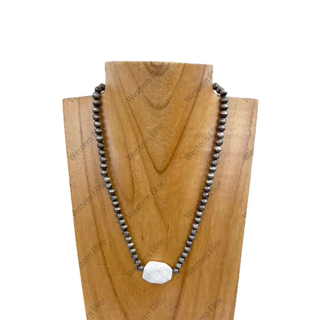 NKZ230930-57 16 Inches silver Navajo pearl beads with white jasper stone Necklace