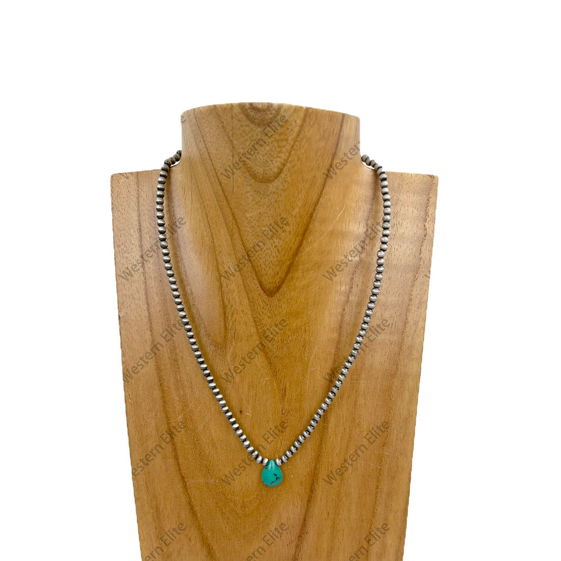 NKZ230930-12 16 inches 4mm silver Navajo pearl beads with blue turquoise teardrop Necklace