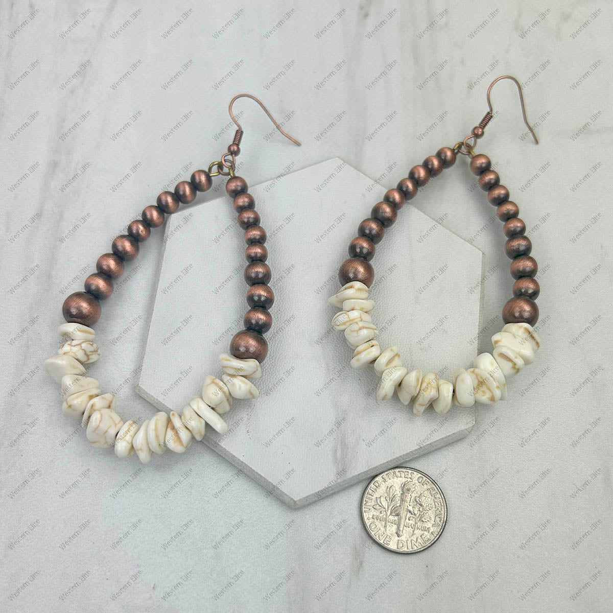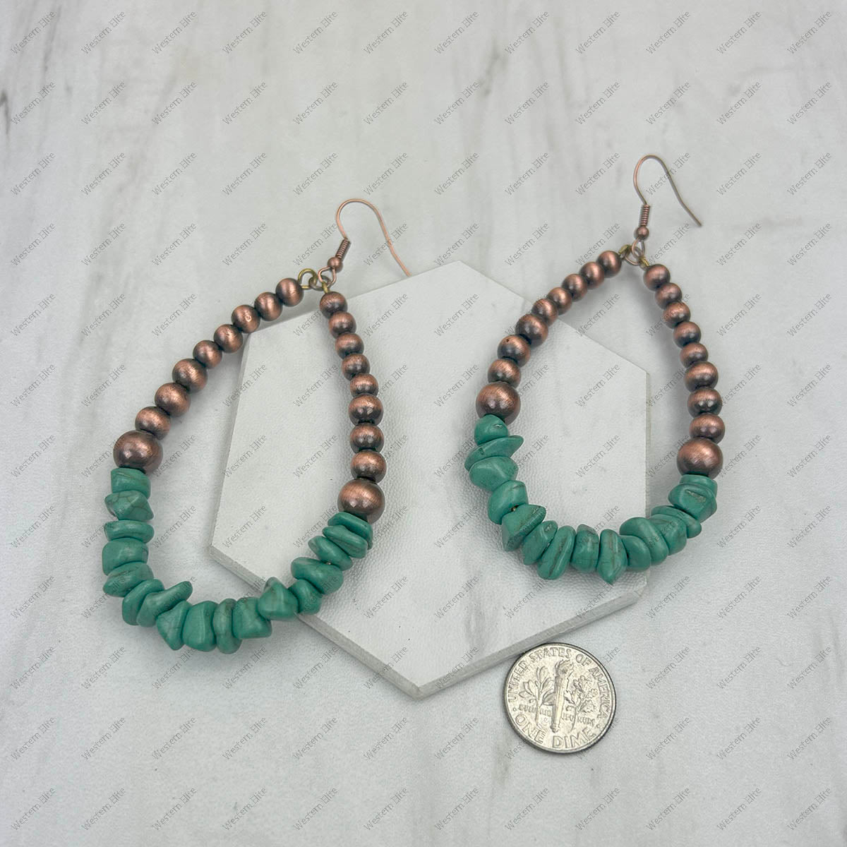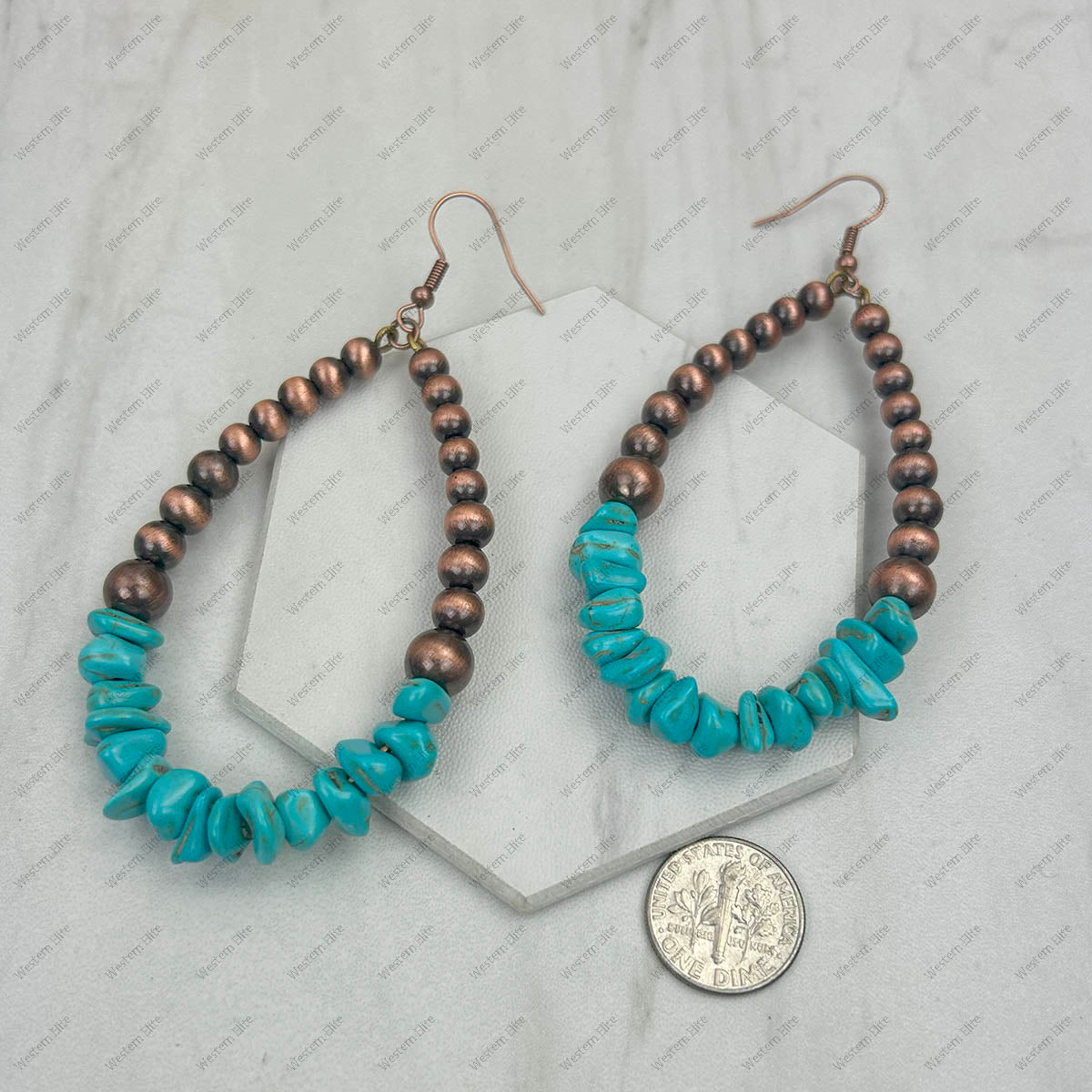 CER240805-14-COPPER-BLUE Copper Navajo pearl with blue turquoise stone chips Earrings