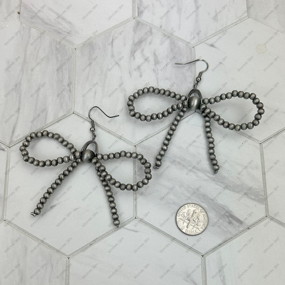ER250309-12 Silver Navajo pearl beads bow tie Earrings