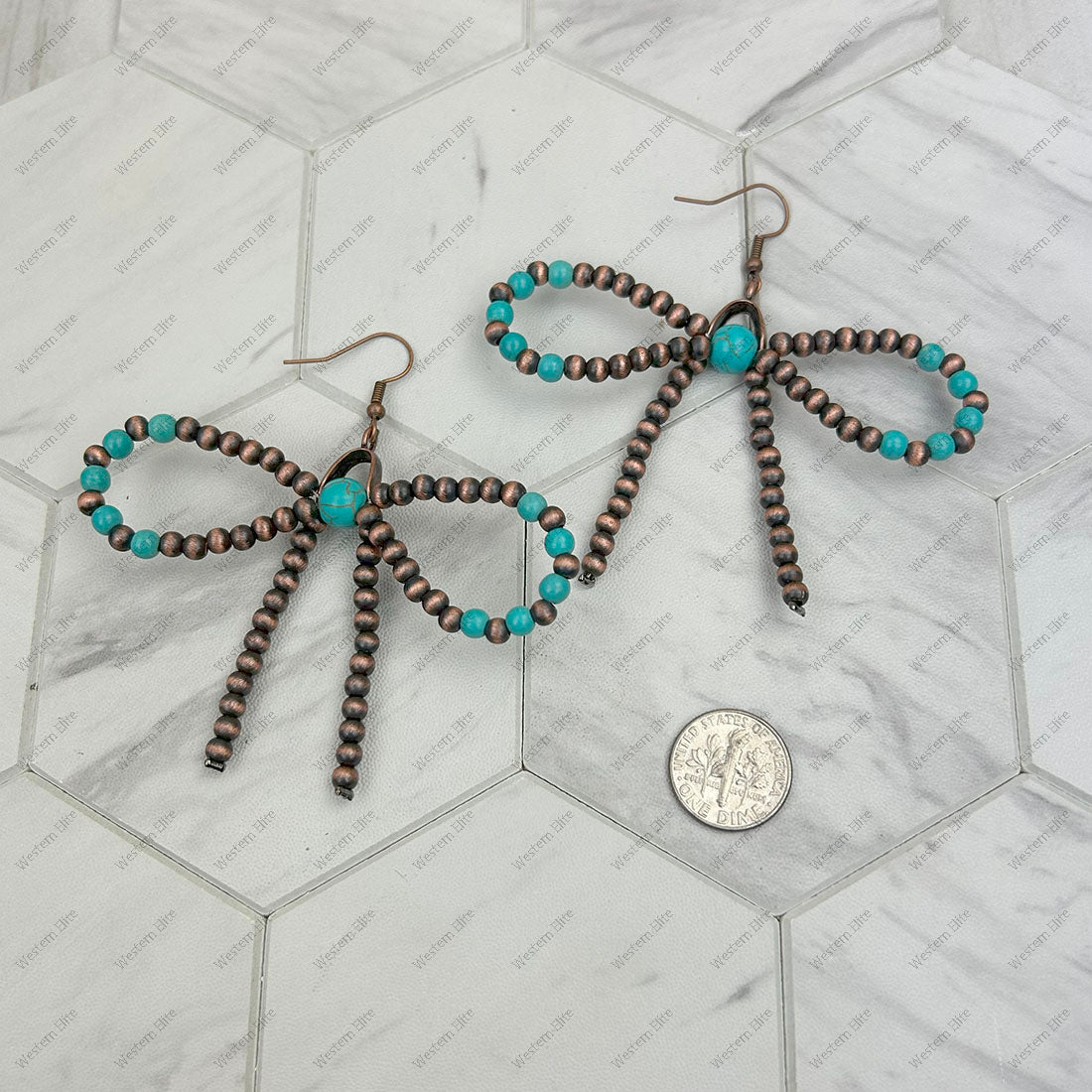 Copper Navajo pearl beads with blue turquoise stone beads bow tie Earrings