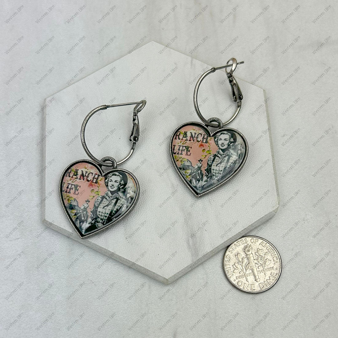 ER250309-02 Silver metal with western cowgirl heart Earrings