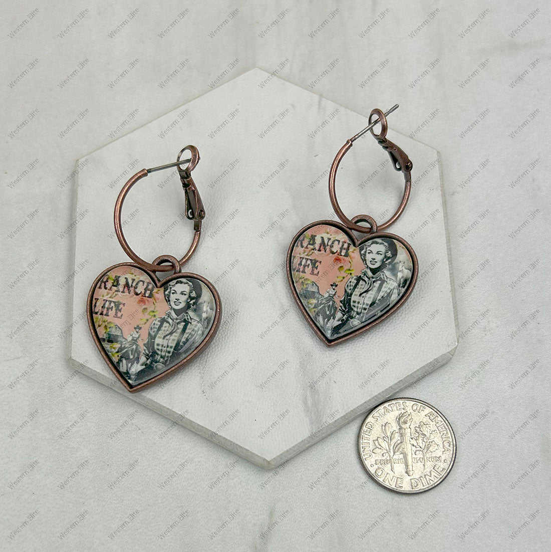 Copper metal with western cowgirl heart Earrings