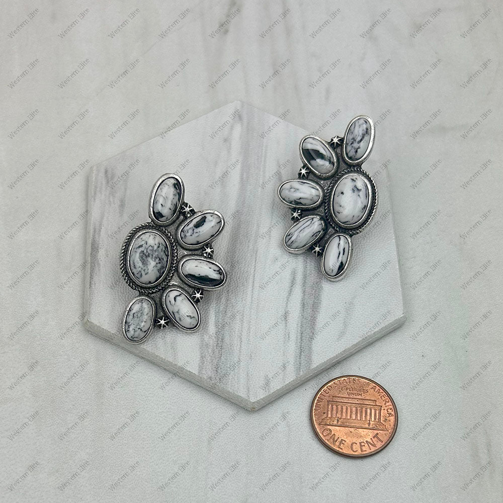 ER250430-03-HOT PINK Silver metal with hot pink stone beads Earrings