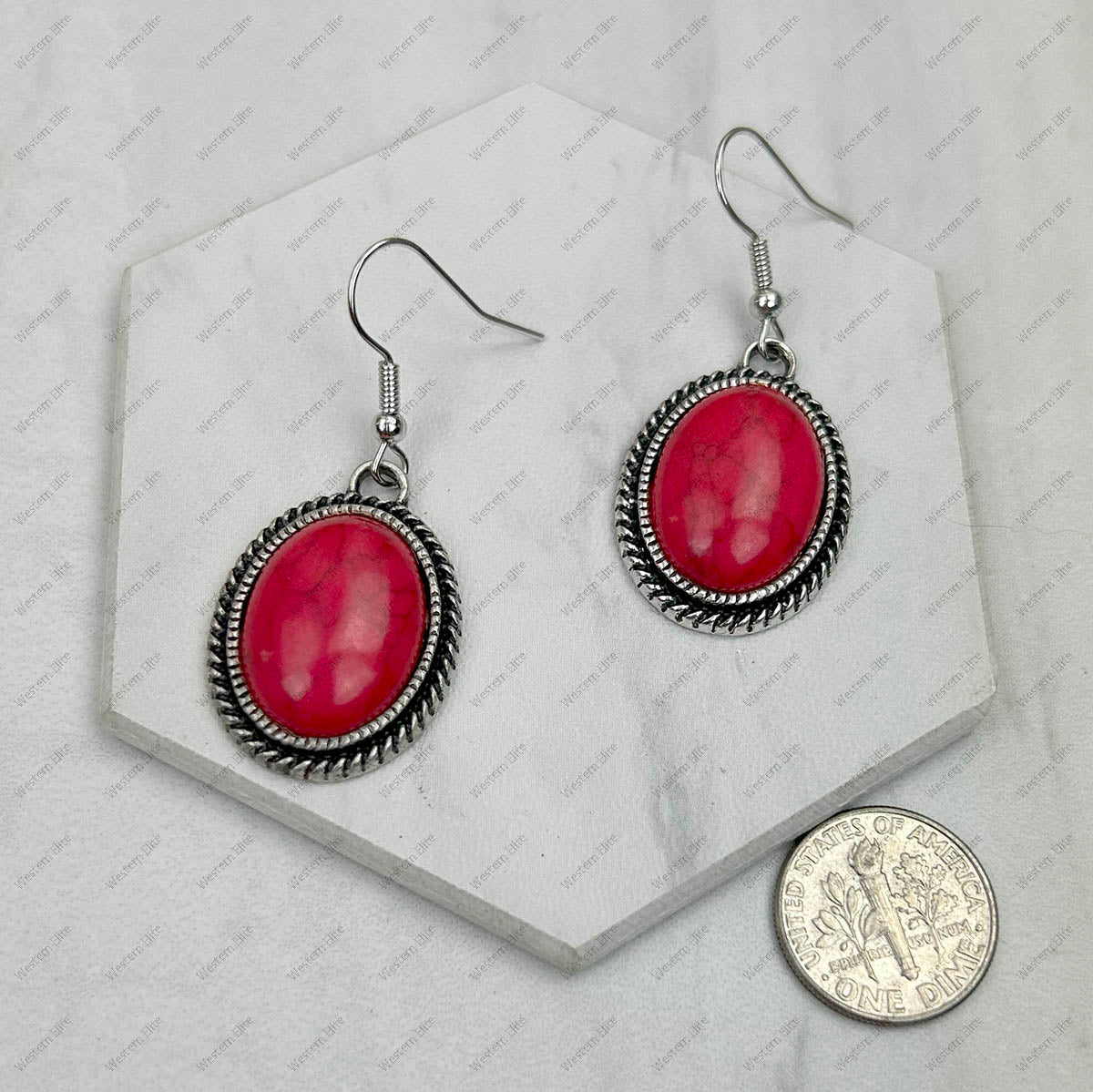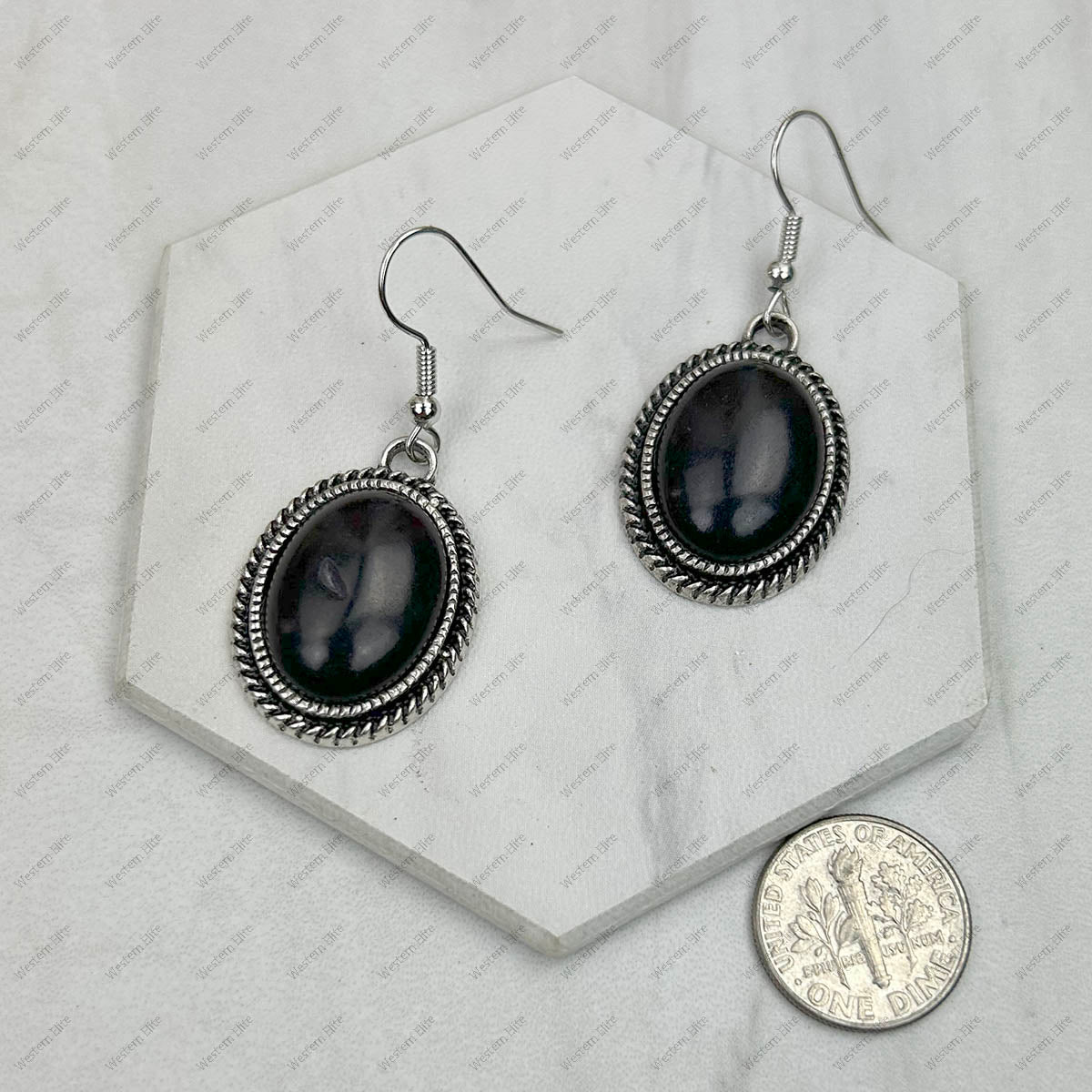 CER240805-07-SILVER-BLUE Silver metal with blue turquoise stone Earrings