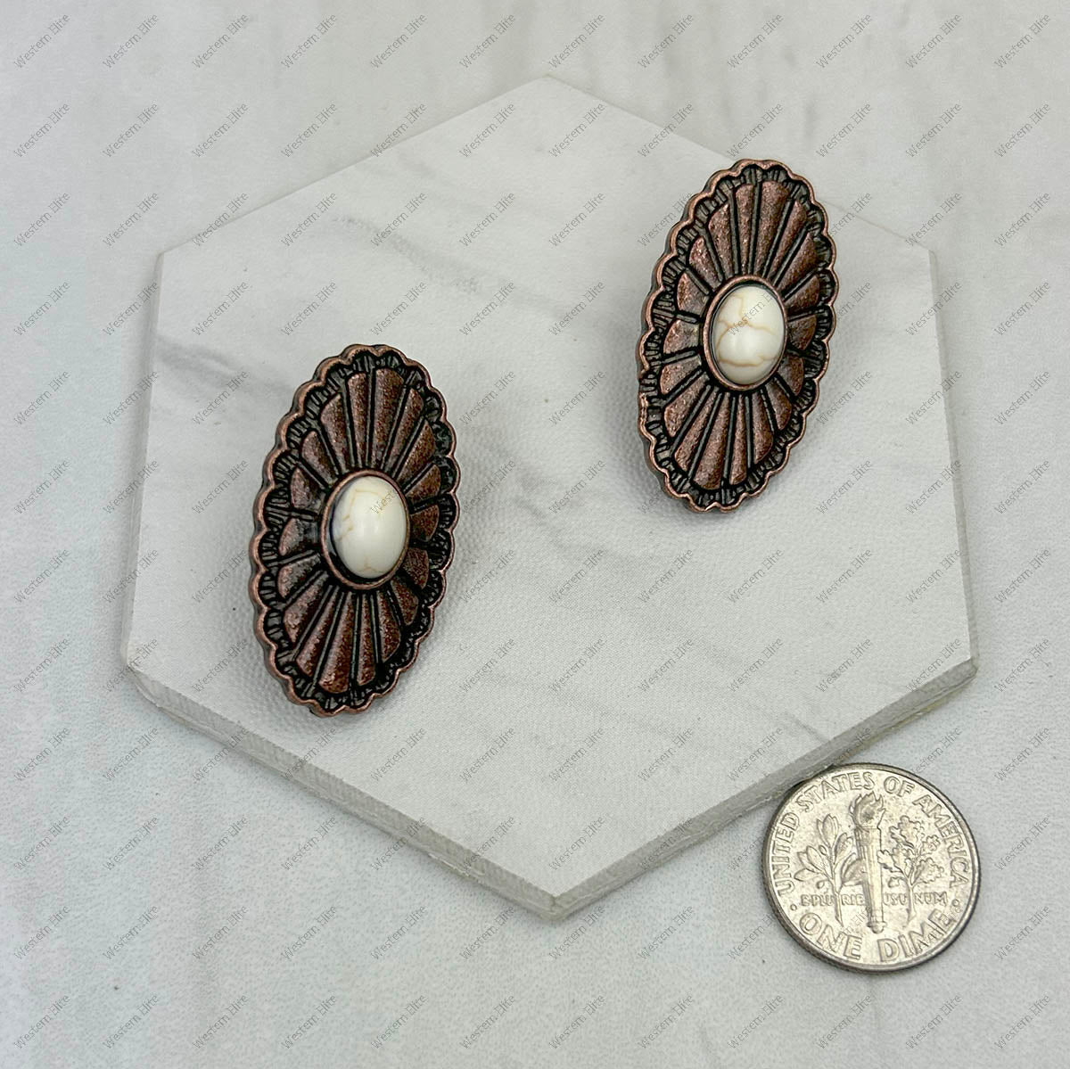 CER240805-09-COPPER-BLUE Copper metal with blue turquoise stone Earrings