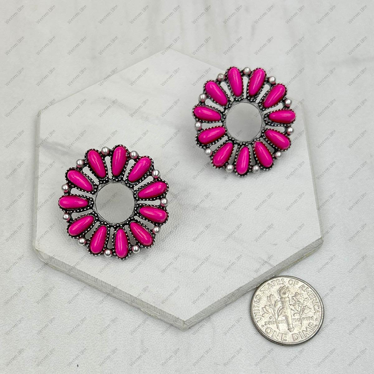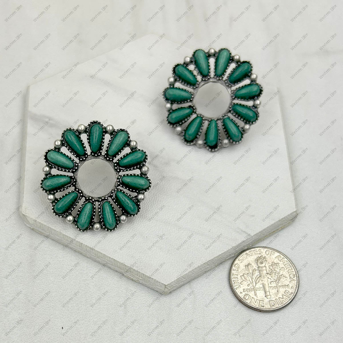 CER240805-10-SILVER-BLUE Silver metal with blue turquoise stone Earrings