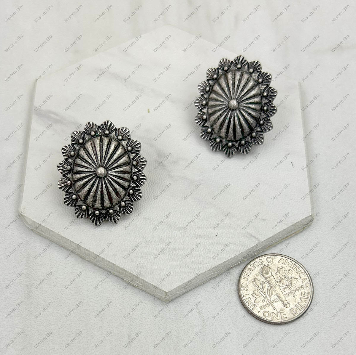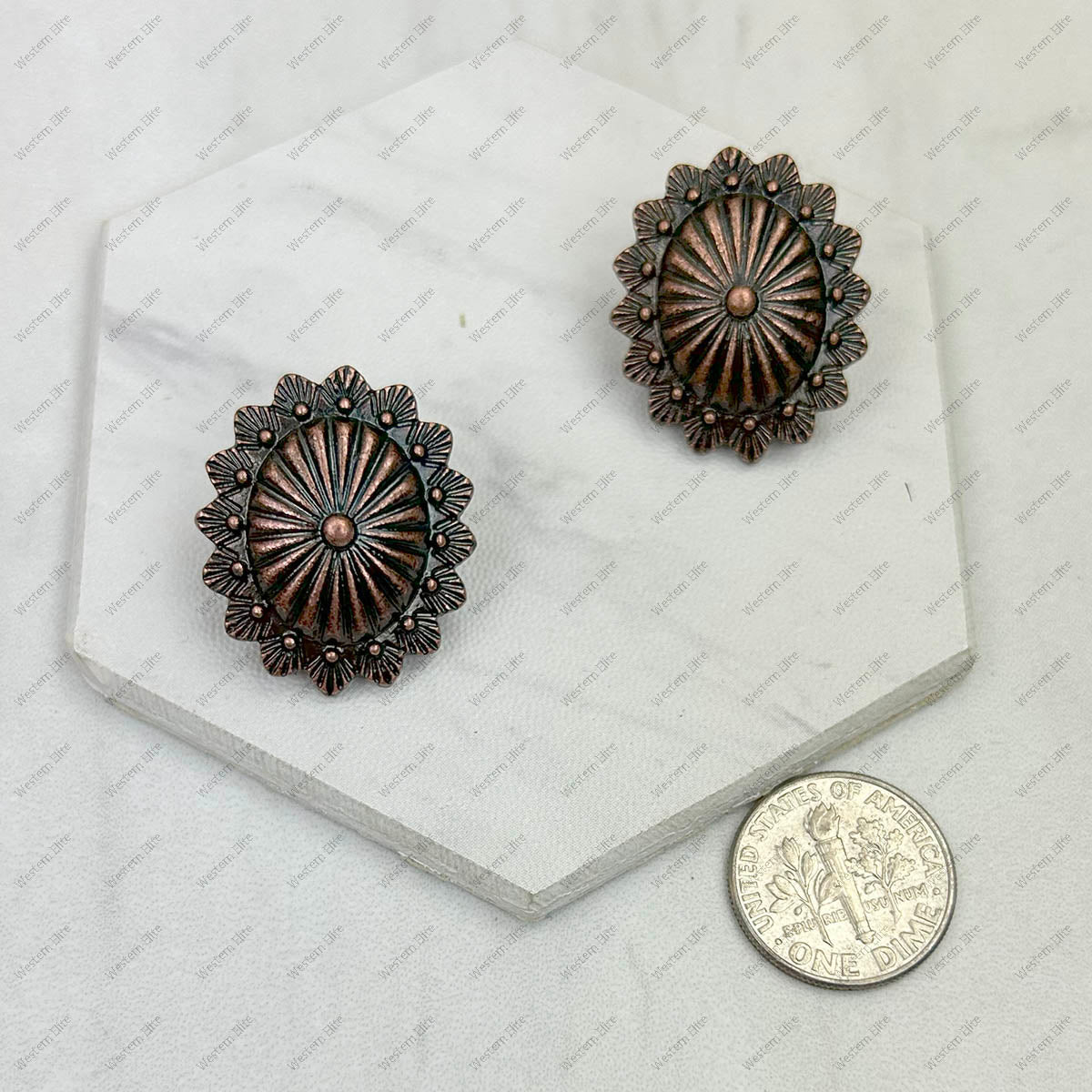 CER240805-13-COPPER Copper metal flower concho Earrings