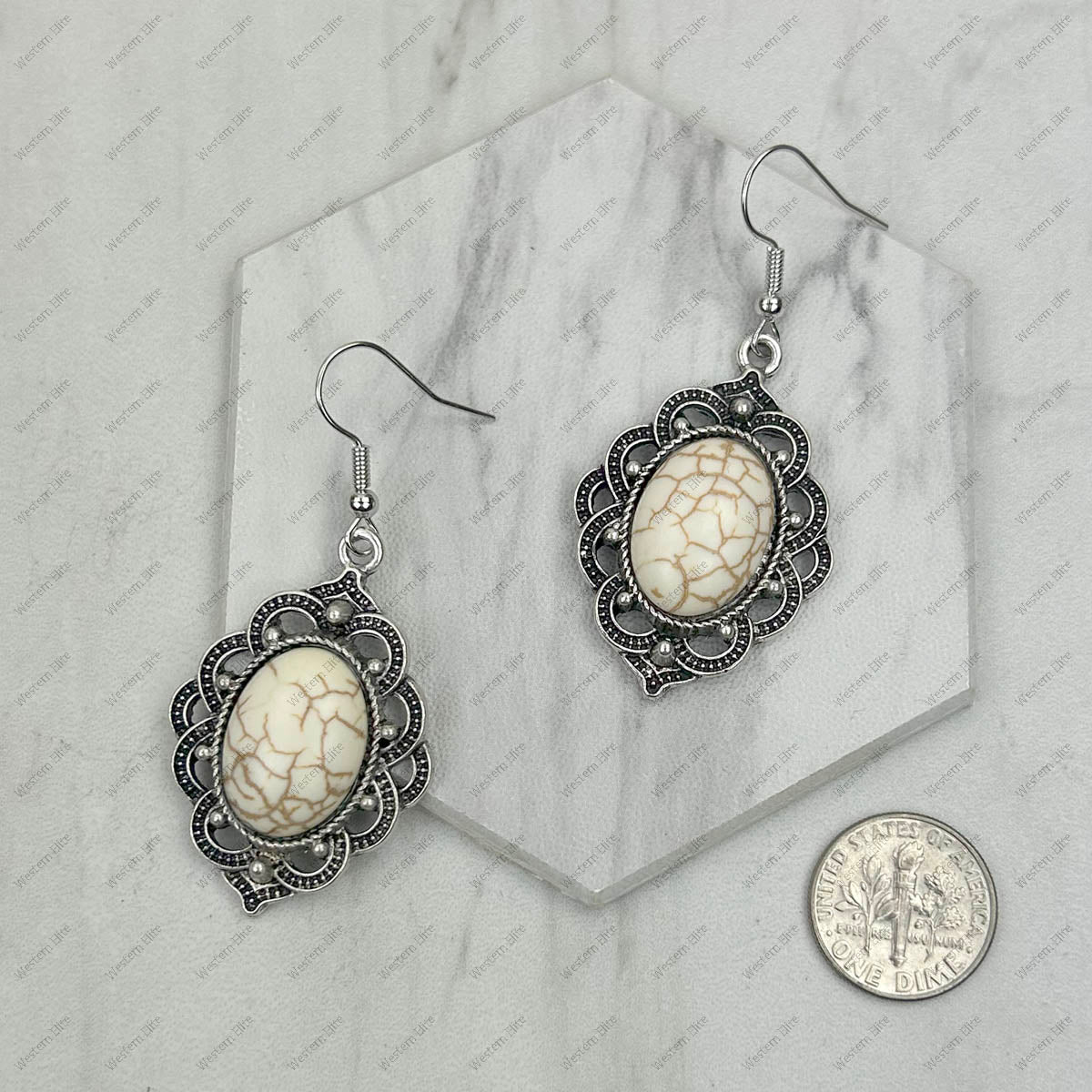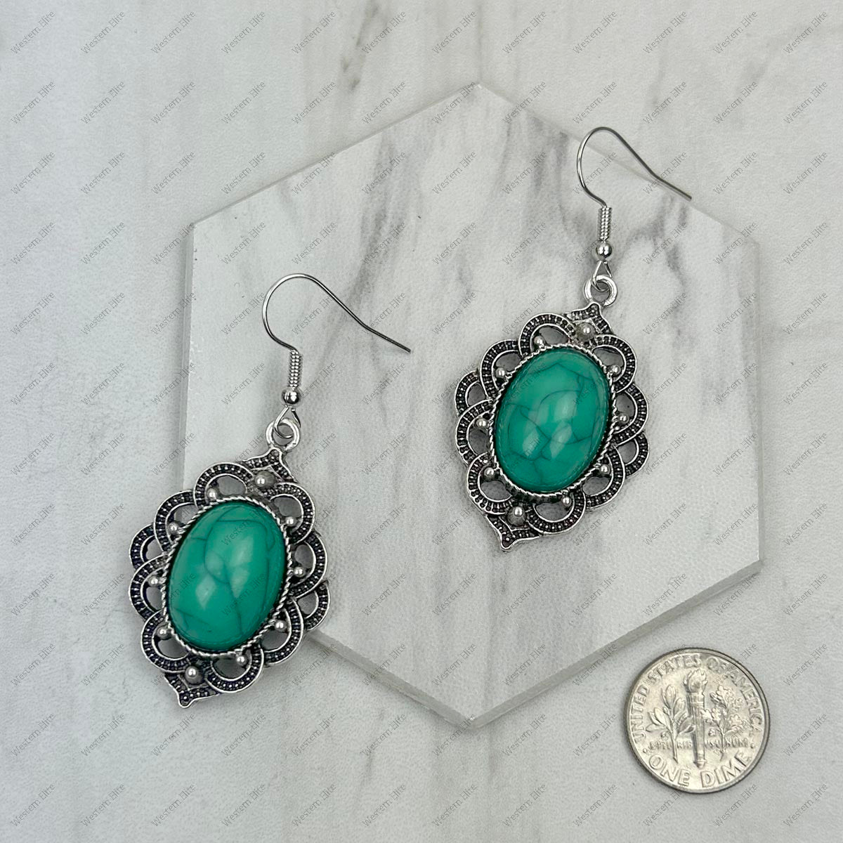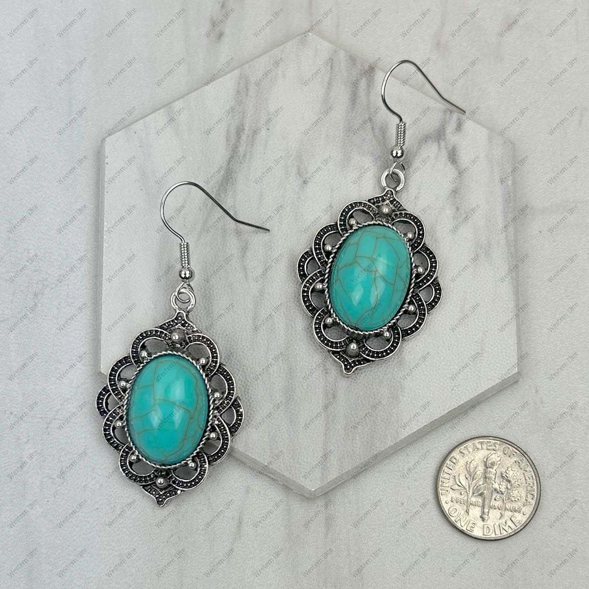 ER240125-03-BLUE silver with blue turquoise oval stone Earrings.