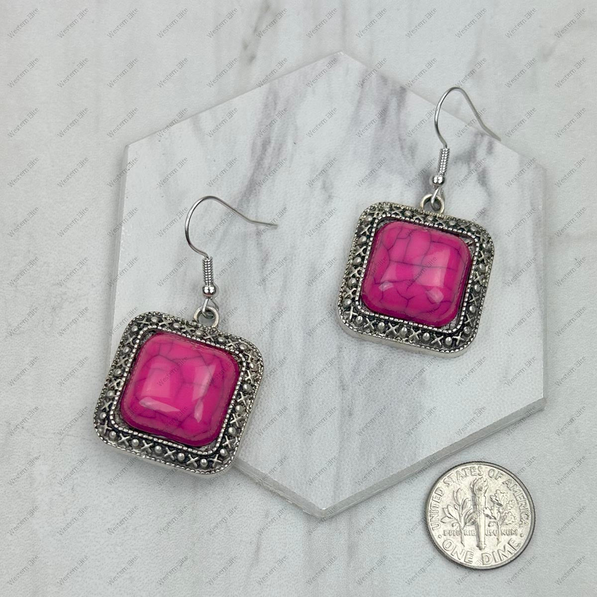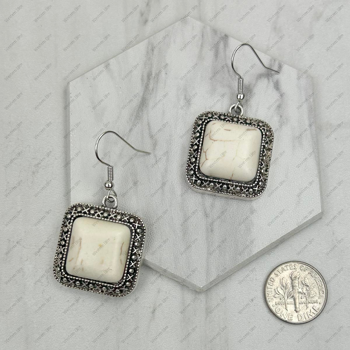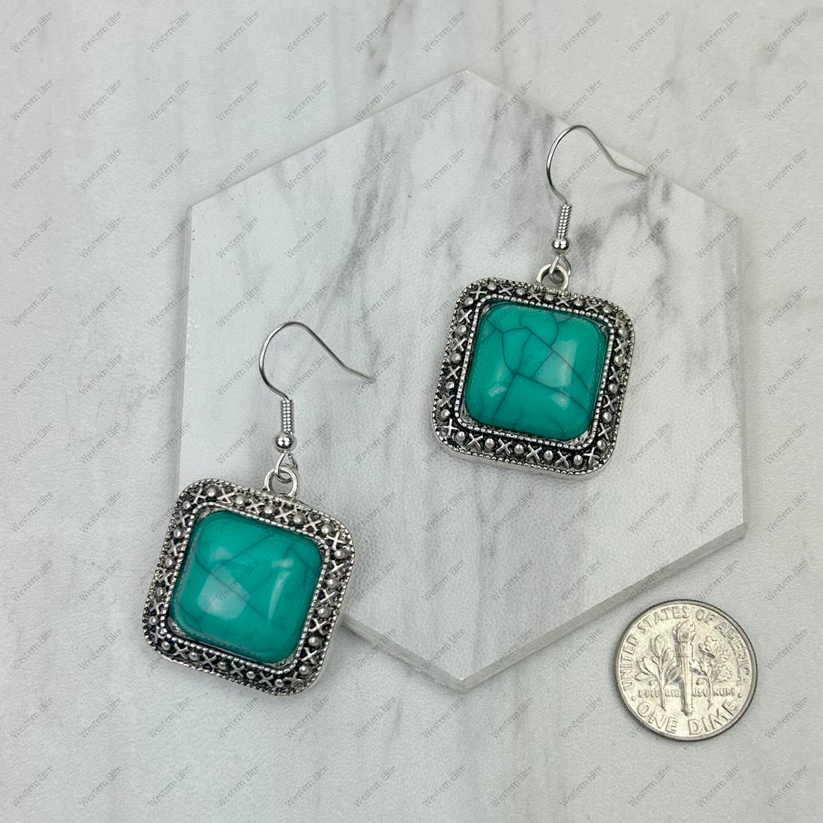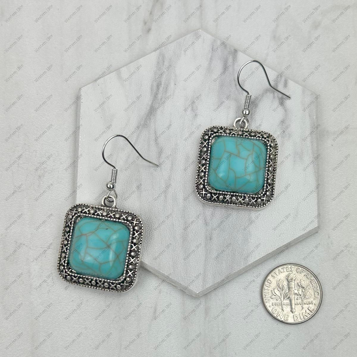 ER240125-05-BLUE Silver with blue turquoise square stone Earrings.