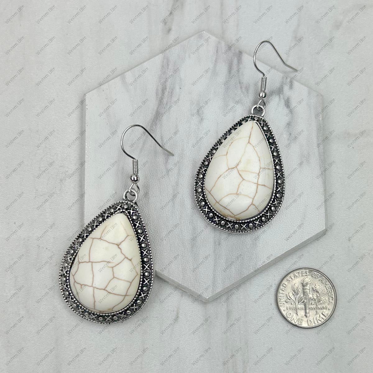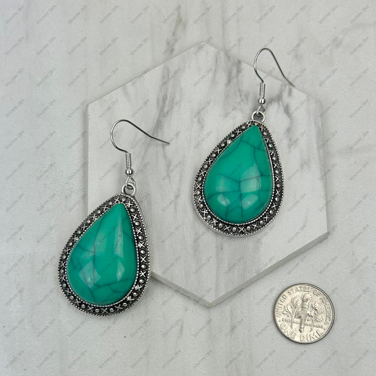 ER240125-02-BLUE silver with blue teardrop turquoise stone Earrings.