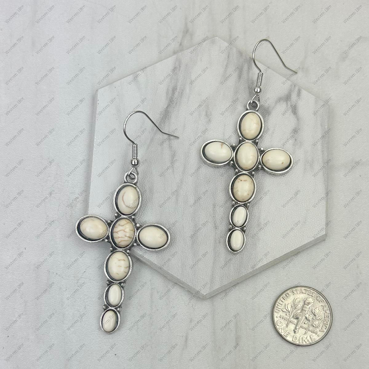 ER240125-04-BLUE silver with blue turquoise oval stone cross Earrings.