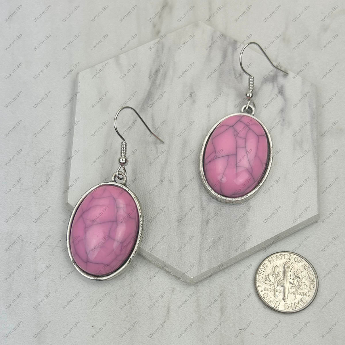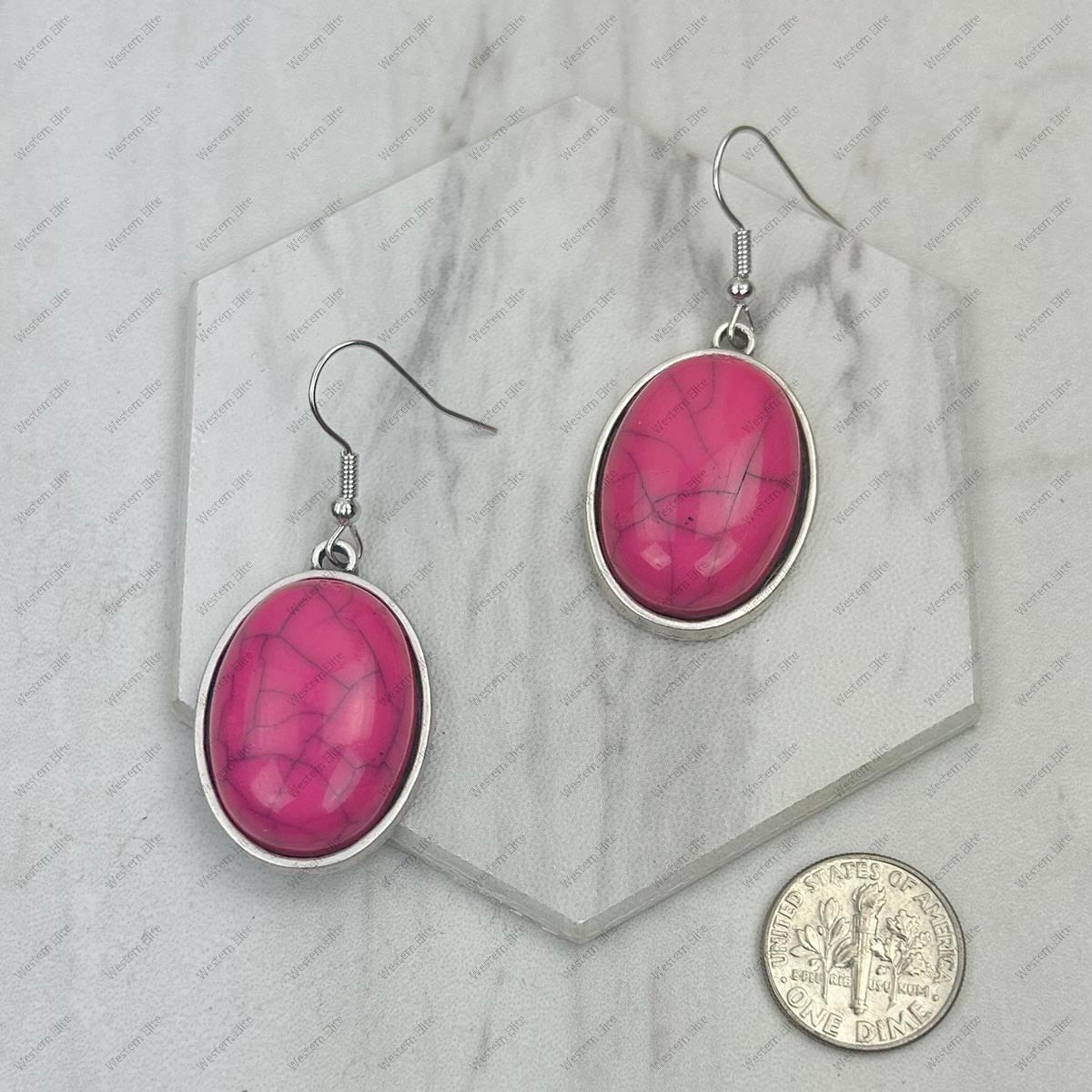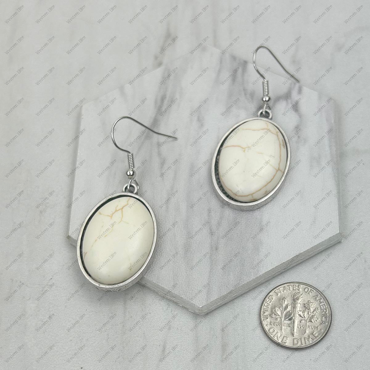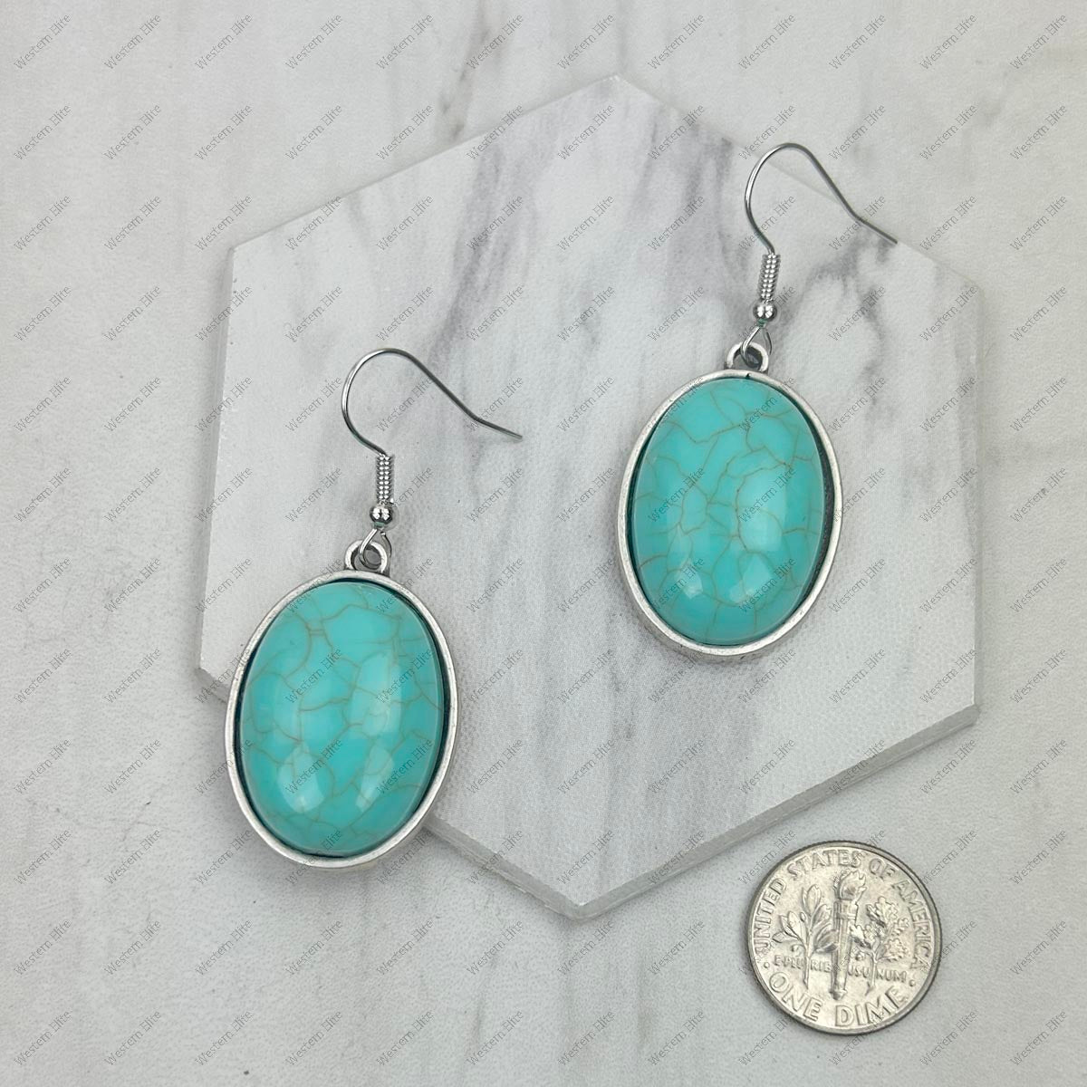 ER240125-01-BLUE silver with blue turquoise oval stone Earrings.
