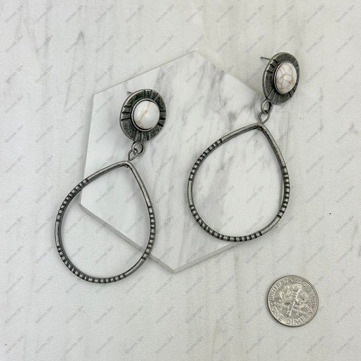 silver metal circle with white turquoise stone Earrings