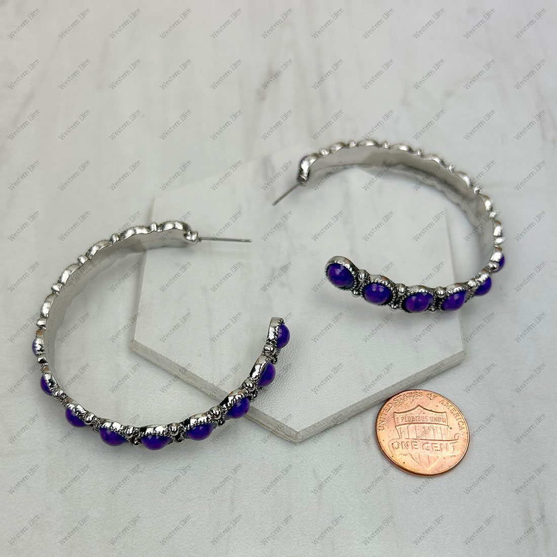 ER191230-03-PURPLE Silver purple stone concho hoop earring