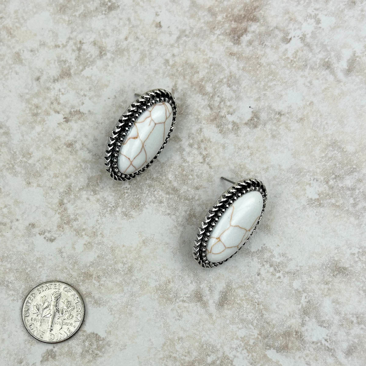 ER230530-05-WHITE Silver with white stone oval post Earrings